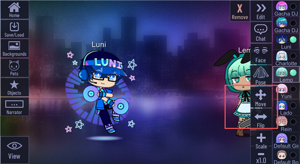 3、选择具体角色,点击【Move】可移动他,【Flip】则可以身体转向。