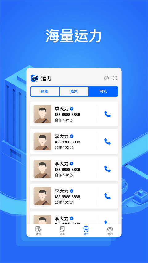 1、多种派单场景: 推送联盟运力长期计划,指定司机派单,分享货源二维码,满足多种业务场景需要。 2、资金安全保障: 资金托管银行,保障用户资金安全性。 3、实时货源管理: 实时查看司机/联盟运力运输状态和派单统计。特色功能