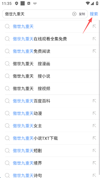 2、输入想要观看的漫画名称,随后点击屏幕右上角的“搜索”。
