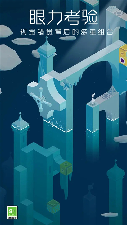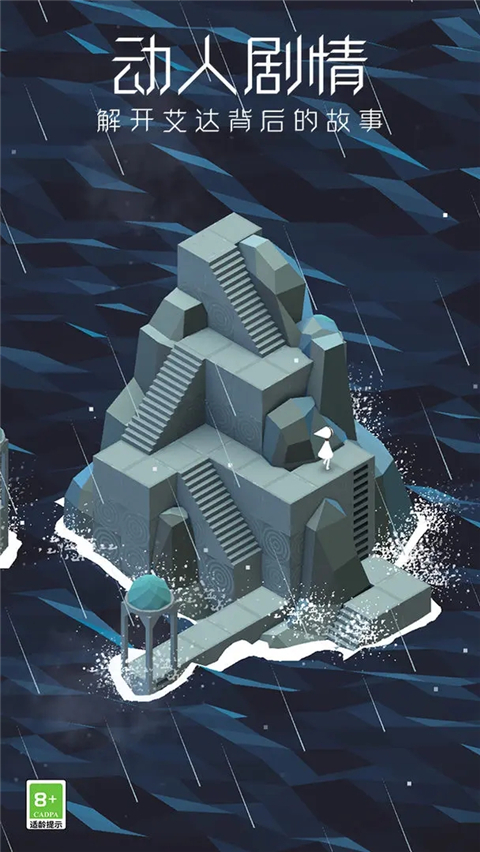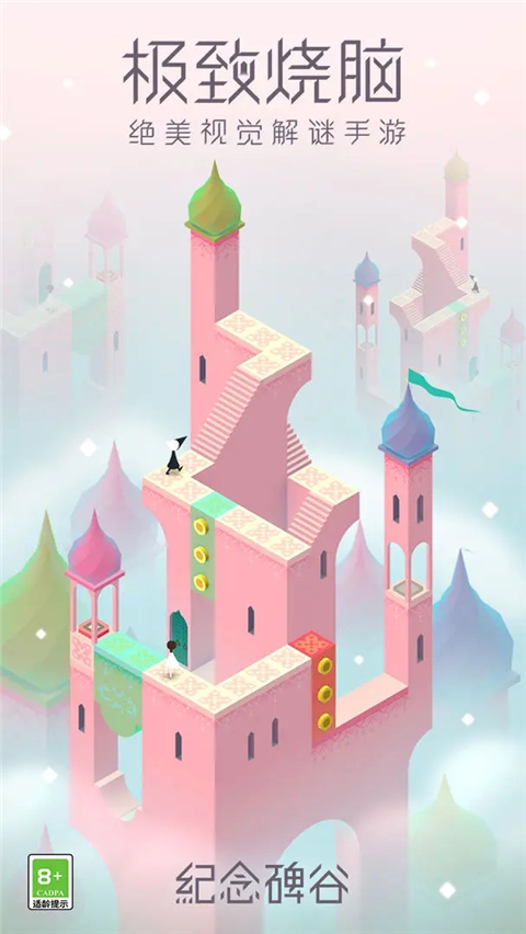 1、【寻找真相--揭开层层谜题】 视觉错觉和几何体重构是解密的关键。 这一座座神秘的纪念碑,看起来是如此的宁静和瑰丽,当你身陷其中,是否能一眼看出通关的奥秘。 转动身体或是转动眼睛,眼前的建筑都是如此不同,两个看起来无法连接的部件,中间真的是鸿沟吗,还是存在某种不易察觉的联系。 给你的建议就是平心静气,多做尝试,相信你在通关的时候可以感觉到我们的心思。 2、【叩开记忆之门--找到错位的开始】 悠远的音乐声和聒噪的乌鸦,沉默的公主带着迷茫在探索前路。她为何身处此处,神秘人略带责备又意味深长的话语究竟是什么含义,一个个晦涩的句子拼接起来,就是她想说的真相吗?遗忘是有代价的,等到回忆寻回之时,也是付出代价的时刻。 3、【踏上救赎之旅--为了艾达也为了自己】 虽然脚步已踏上旅程,但是前面依旧是未知,走下去是唯一的办法。 在行走的过程中,随着记忆一点一点回笼,艾达终于记起自己曾经的错误,寻求宽恕成为下半程的主题。在那些没有察觉的日子里,是谁在为她的错误承担后果,那些途中的乌鸦人,他们口中到底在表达什么?往前走,让那些错位的回到正轨,所谓公主就是要保护自己的族人。游戏玩法