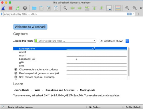 Wireshark mac版是可运行于Mac os系统上一款非常强大的网络封包工具程序。同时软件安装便捷,占用内存小巧,具有着清爽直观的主界面,以及支持数十种语言切换设置,可完美良好的兼容mac平台上各种网络模式之外。