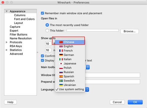 5、完成操作后,即可立即将Wireshark的界面操作语言由英文改成中文方式