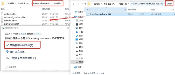 8、将Crack内的licensing.module.xdl64补丁文件复制到软件安装目录下的corelibs文件夹进行替换。
