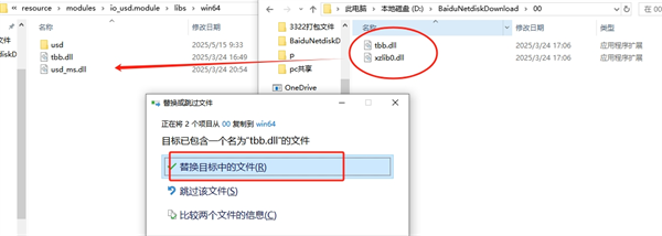 6、随后找到【00】文件夹,把文件夹内的DLL文件,复制替换到默认安装路径当中,【C:\Program Files\Maxon Cinema 4D 2025\resource\modules\io_usd.module\libs\win64】;