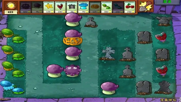特点:地上有墓碑,不仅影响植物摆放,还可能钻出僵尸,晚上阳光产率很低。