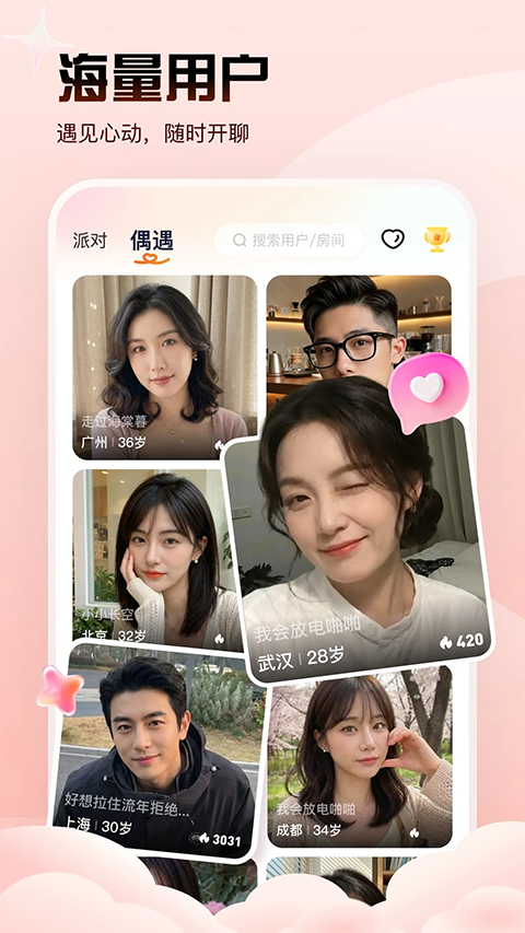 1.全新首页及配色,给你不一样的视觉体验 2.三人交友房全新上线,拒绝尬聊,直接开撩 3.修复已知问题,优化用户体验