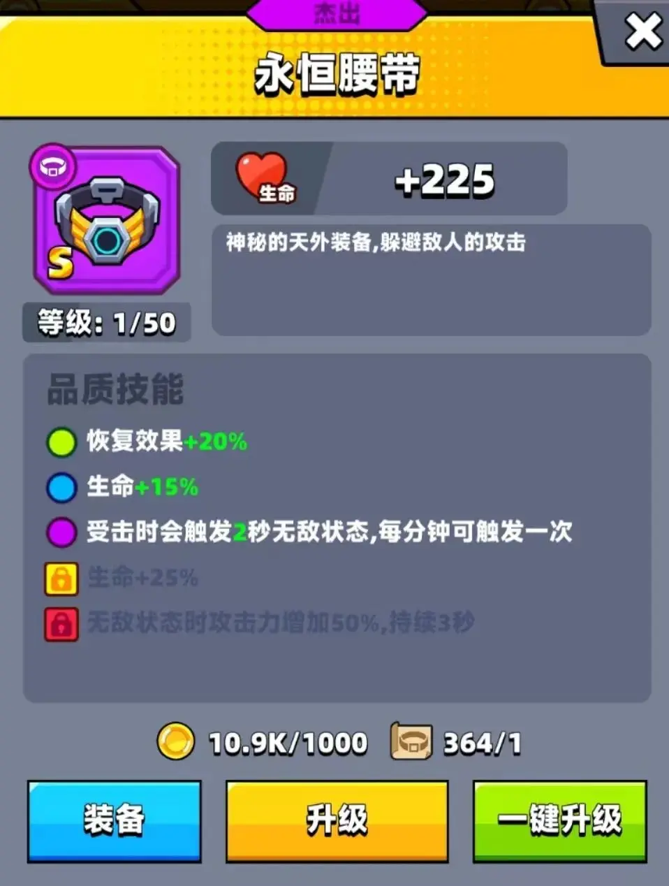 腰带:带时尚腰带,时尚腰带某种情况下来看甚至比S腰带还要实用一点,击败200只怪物就有一个护盾,后期10来秒的样子就刷新一个护盾。S腰带是每分钟触发一次2秒无敌,打BOSS的时候如果能坚持1分钟以上,那么S腰带就比时尚腰带有用。