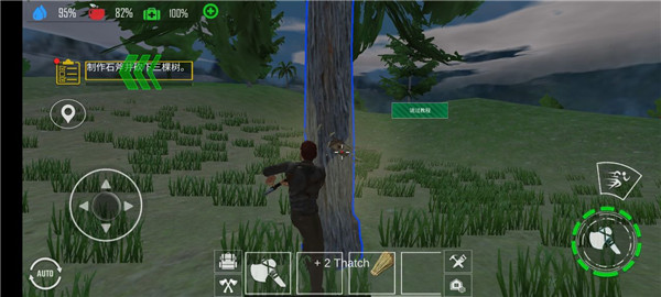 6、按照提示通石斧砍伐三棵树即可通关