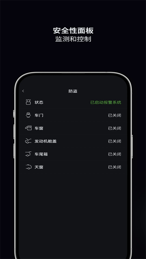 2、这里就可以看到我们的车窗、天窗、后备箱、发动机盖以及车门的关闭状态。