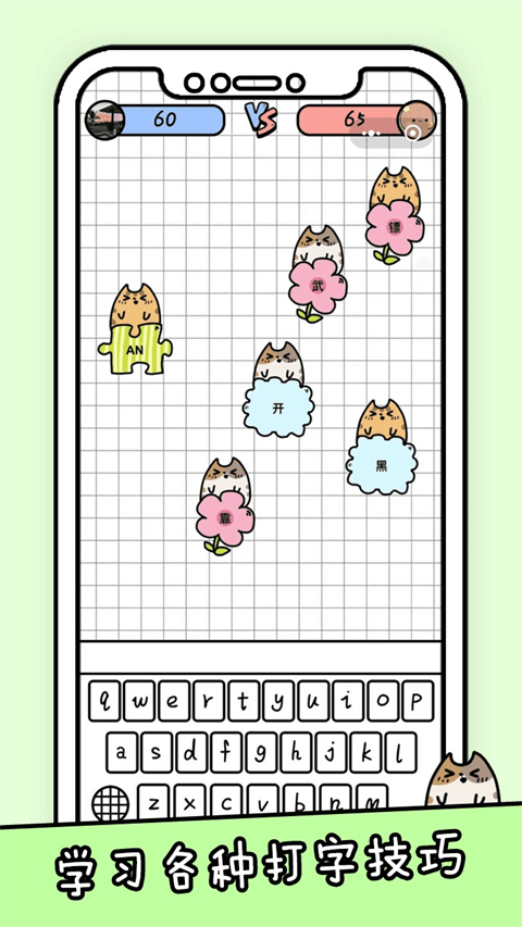 1、超级清新可爱的游戏场景画面,给玩家带来有趣的视觉体验。 2、游戏的玩法特别的简单有趣,玩家可以很快地掌握游戏精髓。 3、适合不同年龄的用户,尤其是测试你的手速,特别的有趣。 4、操作起来简单并且上手会比较快,你的打字速度会飞速提升。 5、玩家可以和不同的选手进行比拼,看看究竟是谁的打字速度更快。 6、轻松的通过打字去打发自己的无聊时光,玩家们可以不断地尝试。游戏优势
