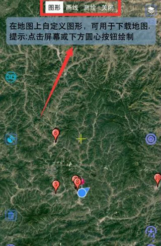 四、包含图形的框选下载、画线测量距离和测绘使用。