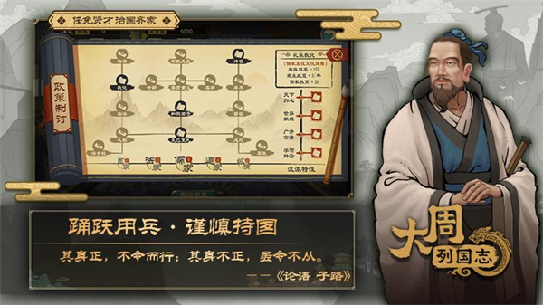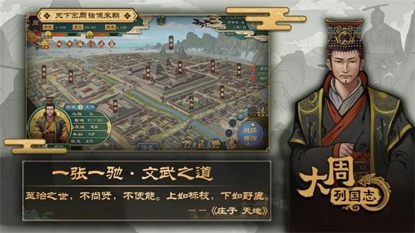 1、【剧本与AI】 从武王伐纣至秦并六国,跨越数百年时间,最多时有数十个诸侯国并立,超过五百个城池,细致描绘了那段历史风貌。 AI的行为模式多元化,参照历史最大程度还原了百家争鸣与诸国征伐的沧海浮沉。 2、【王朝模式】 王朝系统诠释了从礼乐治世到诸侯征伐再到大一统的集权帝国的历史变迁。 在不同纪元下,诸侯遵循的规则也不同,玩家真正代入到这时代中,并推动纪元变迁。 3、【百家争鸣】 这是历史上各类思想萌芽和形成的时期、也是政治、经济制度剧烈变革的时期。以“百家争鸣”为核心,我们设计了儒、法、兵等九大文化流派。 文化:诸侯与地方城池都有着流派文化属性,其奉行的文化影响着上至国家发展方向、下至粮产兵员。甚至可以通过强大的文化影响力,吸引他国城池主动归降。 国政:不同流派合计超过一百组的国政改革措施,践行政治理念和发展之路,引领百年革新潮流! 人才:不同流派的人才各有所长,不论是担任城守、朝臣;还是执行任务,均需要知才善任,才可以发挥其最大的效用。 4、【内政管理】 宏观管理:调节税率、役率、水利、人口、城防、文化、农业建设、军事建设等,规划设定发展目标。 城市特性:城市有不同地型和特性。有些城市关塞易守难攻,有些城市交通便利发展快速,有些城市水系发达利于发展农业… 地方治理:需要综合考虑和安排各城的经济发展、文化、治安、军备。大周列国志—都城建筑功能介绍