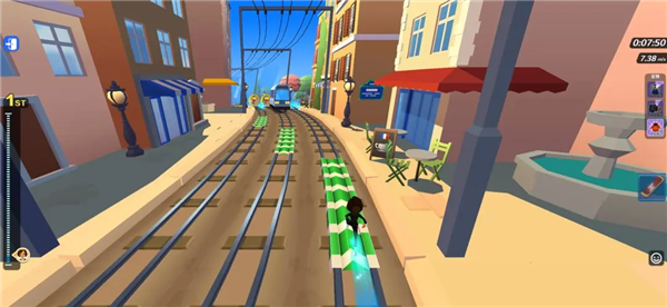 踩绿色加速带可以让我们的速度短暂提升,而连续踩中则速度又会叠加。