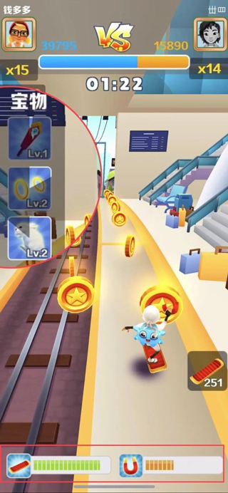 1、地铁跑酷直充正版是一款无尽的跑步游戏。游戏从点击触摸屏开始,而杰克(游戏的起始角色)或任何其他角色在地铁上喷涂涂鸦,然后被检查员和他的狗抓住,开始追逐角色。跑步时,玩家可以上下左右滑动来避免撞到迎面而来的障碍物,尤其是移动的地铁、电线杆、隧道墙和障碍物。随着速度的增加快速滑动,可以获得更多的积分。崩溃导致游戏结束,但玩家可以通过按键或观看广告继续奔跑。玩家可以收集各种物品,如硬币、钥匙、分数倍增器、超级运动鞋、喷气背包、磁铁、神秘盒子和电源跳线。动力跳跃者通过发射角色提供燃烧,喷气背包提供飞行能力,硬币磁铁在赛道上吸引硬币,超级运动鞋提供跳得更高的能力,分数乘数乘以分数计数的速率。诸如气垫板之类的物品可以让角色避免碰撞并持续约 30 秒。 2、每日挑战和季节狩猎为整个游戏过程中的独特动作提供奖励。在日常挑战中,玩家需要收集构成与游戏相关的单词的字母,例如“得分”和“跳跃”;也被称为“文字搜索”。任务有不同的任务,由玩家准确度来衡量。最多可以使用硬币、钥匙、游戏内购买、收集特定物品或连接到帐户来解锁 18 个角色。大多数角色最多有 2 种不同的服装。同时,使用相同的方法最多可以解锁 17 个悬浮滑板。每个人都有不同的能力可以帮助玩家。当游戏更新到新位置时,新角色和气垫板将暂时可用,直到下一次更新。【地铁跑酷】分数赛得分攻略