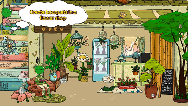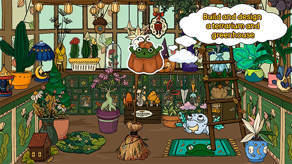 1、温室 在温室里,你可以种很多稀有植物, 你的饲养箱里的花越多,你的植物标本室书就越大,在那里你可以学习植物护理的技巧。每个花园每12小时发放15枚硬币。拆开房间装饰,打造舒适的花园设计,川崎家居设计,可爱的设计。 你可以在游戏中发现200多种独特的植物和种子。青蛙巴特喜欢在温室里放松,在这个园艺美学游戏和镇静游戏中,成为一名植物发现者,玩花园游戏,观看饲养箱。 2、咖啡屋 你温室里的所有青蛙都喜欢温暖舒适的咖啡。用你美味的饮料取悦青蛙! 为完成日常任务提供了新的食谱!拆开可爱的咖啡厅装饰,练习创造最好的家居设计、花园设计。创造一个树的世界。 3、维持青蛙露露家的秩序 青蛙露露在他的花园里非常喜欢鱼,但有时垃圾会进湖里。 爱护露露花园里的鱼和自然, 完成日常任务可以获得独特的装饰。 找植物的人可以在鲁鲁家园艺,开花结果,享受平静的游戏和放松的游戏,审美游戏,放松的游戏。 4、在可爱的游戏中打开你的花店 在你的小而舒适的花店里,你可以种植和收集你喜欢的花束。 你可以种植许多美丽的花:玫瑰、矢车菊、向日葵、菊花、薰衣草、康乃馨。在花店,你可以创造完美的家居设计,种植你的花园,kawaii设计,打开房间装饰。 5、种花和玩自然游戏 在可爱的温室里,你将能够跟随植物的进化,结识许多令人惊叹的花朵,就像小玉米粥,喜欢关注和照顾,照顾它们,它们一定会给你一点奖励, 别忘了用水浇花,这样你的饲养箱里就会有更多的氧气和清洁的空气! 园艺玩家喜欢平静的游戏和令人满意的游戏,利用植物查找器作为宝贵的工具来增强他们在自然游戏中的体验。 6、安排电影放映,在老式老虎机上玩花园游戏 在娱乐室,您可以为青蛙安排电影放映,并为在老式老虎机游戏中取得的成就获得奖项露露的家花园游戏攻略