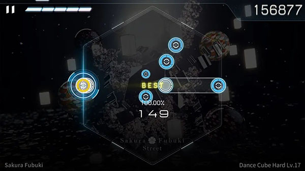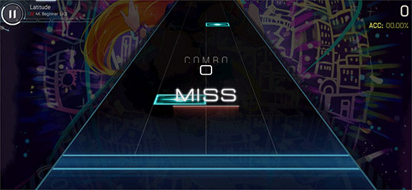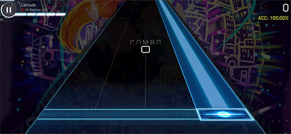 5、长条方块则需要长按,方块越接近目标线获得的分数也会越高,若漏击方块则不会获得分数。