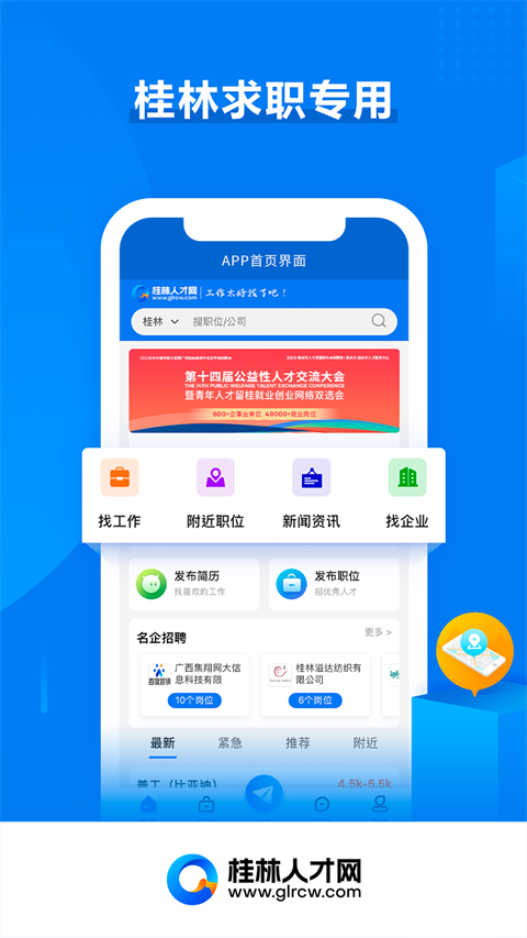 1、【同城招聘】专注桂林本地招聘,发布最新工作资讯,涵盖多项人才公益活动; 2、【线下活动】年度举办超20场线下招聘会,提供免费求职指导、简历优化等服务; 3、【公招发布】公务员、事业单位招考指定发布渠道,发布最新报考通知; 4、【国家/事业单位招考】公务员、事业单位招考官方指定发布渠道,发布最新报考通知。软件亮点
