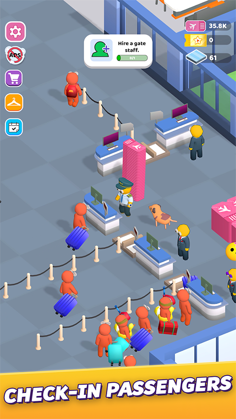 1、趣味经营模拟游戏,机场题材,很多任务,等你来完成; 2、精彩欢乐的游戏体验,合理的规划机场大厅,容纳更多乘客; 3、为旅客们提供最优质的服务,安全地将乘客们送往目的地; 4、随意滑动屏幕,控制角色来回移动,根据箭头指示,进行建造; 5、接待乘客获得奖励,建造机场设备,解锁更多的员工帮你搭理; 6、当乘客登机后,驾驶飞机根据箭头指示飞往世界各地,把乘客送到后返航。 7、游戏中有多种有趣的玩法,首先是经营建造,然后还要模拟飞行; 8、多种机场设备需要你的解锁,各种职位的员工等待你的招聘; 9、高度自由的玩法,精彩有趣,赶快来打造属于你的航空公司吧。游戏优势