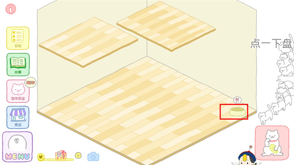 1、首先大家进入猫咪很可爱可我是幽灵游戏,刚进入游戏我们可以看到有一个猫盆,点击一下就可以装上猫粮了。