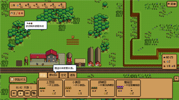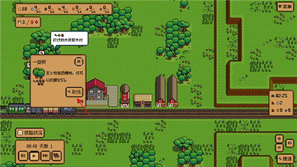 2、开局我们是没有任何物资的,等待火车到来就有村民了,点击树木选择砍伐村民即可进行砍伐收集;