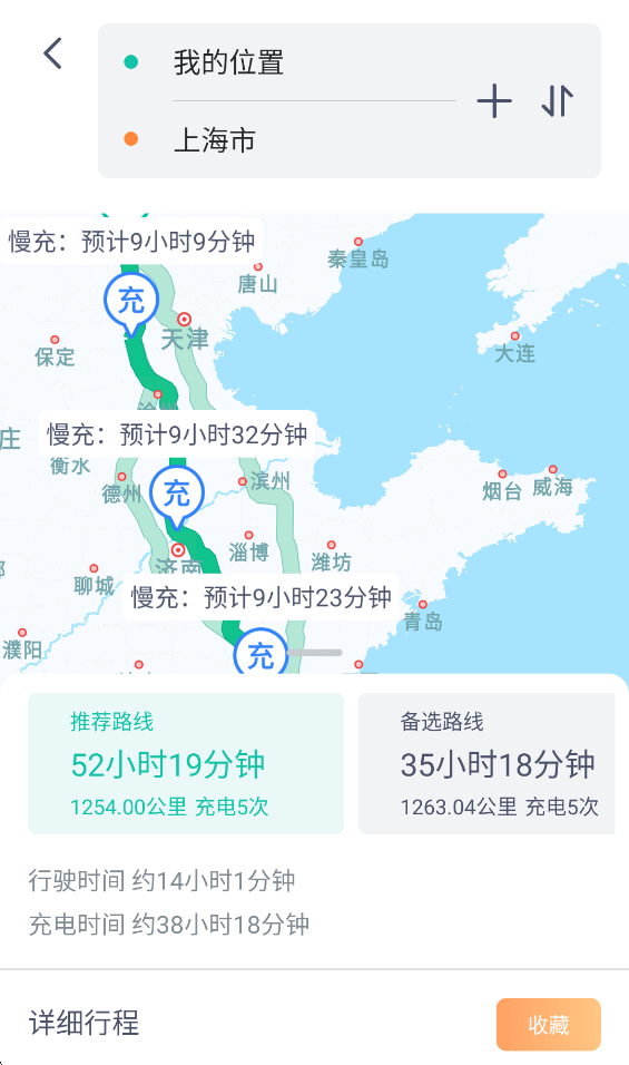 5、输入你的目的地,会自动为你规划路线并标注沿路可以充电桩的位置。