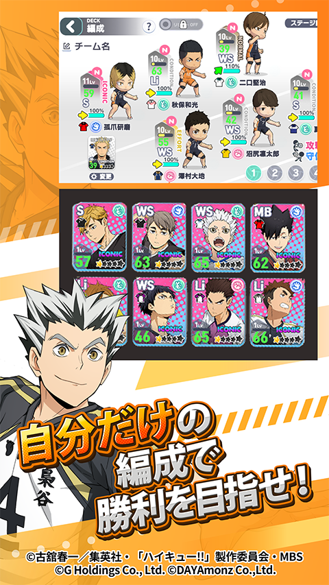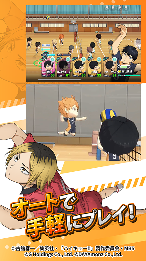 1、小角色在球场上奔跑 游戏原创的小角色能享乐的正式排球游戏! 2、能用全语音享受的故事 被排球迷住的主人公,日向翔阳和个性丰富的角色们 热血青春排球故事。 再一次用全音体验那个青春和感动的故事! 3、以只属于你的梦之队为目标的“顶峰景色” 组合就看你了! 在动画中没能看到的梦之队编成,以“山顶的景色”为目标吧! 4、满载着原创插图 完全画起了充满临场感的比赛中的身姿的插图! 集合众多的角色让他们成长吧! 5、搭载了丰富的内容 故事模式PvP、淘汰赛等,让你热血沸腾的内容丰富! 通过自动匹配内容自动获取经验和金币!排球少年手游玩法介绍