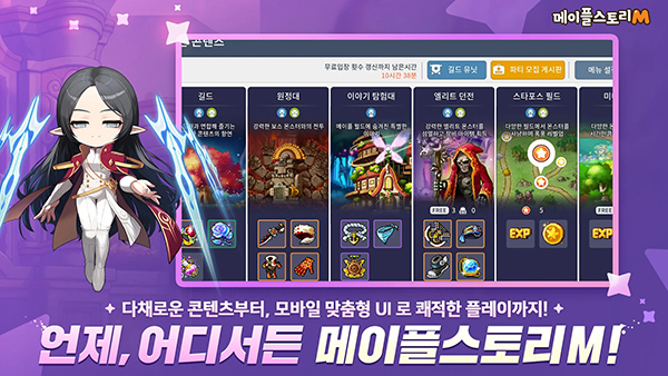 1、超乎想象的各种角色! 在冒险世界,任何人都可以 遇见各种让你满意的角色 【冒险】【英雄】【天鹅骑士】【抵抗】【恶魔】【新星】 2、更舒适的成长! 睡觉时间是对性格成长的浪费! 即使游戏关闭也会继续自动狩猎 战士的成长总是在继续 3、战士的变身是无辜的! 枫叶世界下没有长得像的英雄! 枫的另一种感性,【配合】 根据武士的口味进行装饰,如可爱、可爱、酷炫、简约、独特。 4、让您的旅程更加丰富多彩的内容! 另一个故事将发生在英雄的记忆中 【迷你地牢】我自己的私人空间狩猎 【星力场】 聚会猎场的标准,随着我们的聚在一起而变得更强 【团契】一心一击的boss模式 【宠物】冒险岛M旅途中的伙伴 【兑换】自由交易市场买卖各种物品 【公会】我们共同书写的枫叶世界传奇游戏亮点