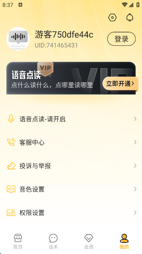 1、登录 用户可以点击“我的”,可以看到是游客登录状态,点击屏幕右上方的“登录”即可使用手机号注册登录自己的账号。
