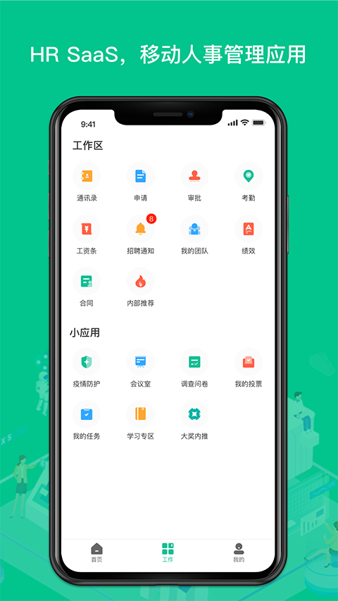 【组织人事】 员工自助信息采集,电子合同、电子档案,功能密集实用,组织权限集团化管控,支持复杂组织结构 【薪酬考勤】 多样考勤方式设置,自动同步薪酬计算,精准核算0失误,薪个税同步税务局数据,核算申报一步到位,化繁为简更高效 【招聘管理】 招聘全流程跟踪,多种招聘渠道覆盖,操作便捷更流畅,为企业自建招聘门户,人才库管理体系,实现定向人才激活 【绩效激励】 支持预设或自定义考核模板,轻松搭建绩效考核体系,基于员工行为的数据评价模型、积分评价体系,可综合呈现员工和组织状态软件功能