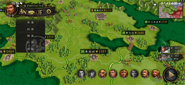 结盟:和其他势力结盟,最好60关系以上结盟,成功率高。