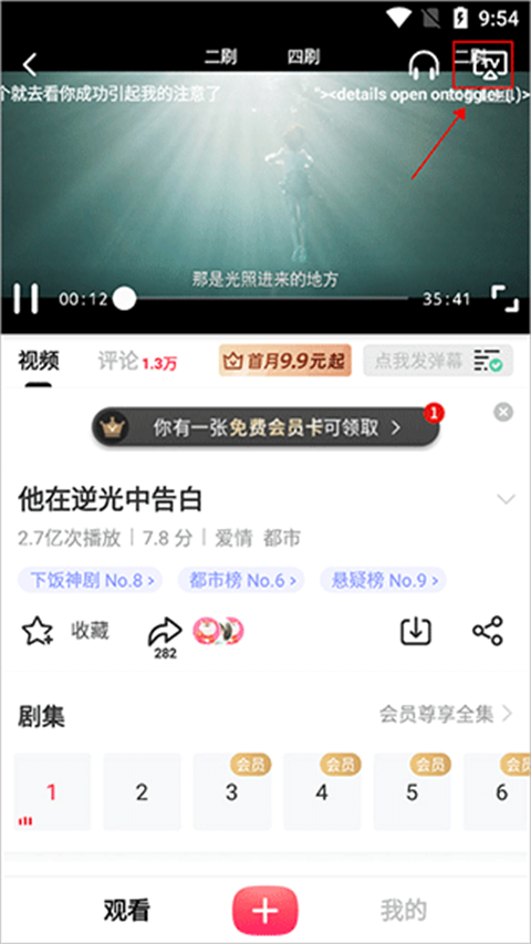 3、随后进入了播放界面,影片开始播放,这时我们可以看见,右上角有个TV的标志,我们点击即可, 如果有的是灰的,那可能是版权不支持;