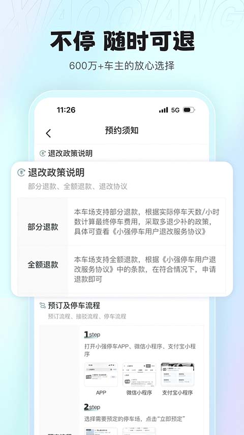 1、为车主提供机场、高铁站、医院等场景的一站式停车服务,包含车位查询、预订、支付、导航、接送服务等; 2、全面详细展示机场、高铁站等目的地周边的停车场名称、位置、距离及收费详情; 3、可根据成交量、价格、距离、评价等多维度选择停车场,货比三家,实现在线预订及支付停车费用; 4、海量停车场,多重认证,任君选择,放心停泊; 5、离线地图,一键导航,方便快捷,节省流量; 6、同时支持线上、线下两种支付方式; 7、接入在线查询、处理车辆违章、查询航班动态等服务; 8、软件中定位功能,可能稍微耗电量耗电池,敬请注意。小强停车app使用说明