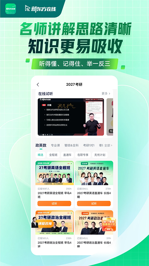 1、贴心的班级服务:参入班级群,与同学互相监督学习;有疑惑立即问老师,不让难题陪你过夜; 2、24小时答疑辅导:助教团队全天等候,难题拍照上传,专业的答疑解析立即呈现。 3、在线直播课:与老师、同学实时互动,解答、讨论课程难题;上课视频可缓存,反复观看回放与笔记; 4、经典录播课:千万名师沉淀数年打造的知识精讲与干货秘籍,随时随地可学习; 5、一对一模式:定制属于你的个性化课程与服务,因材施教效果更好; 6、定制化学习工具:口语练习、作文批改、真题摸底、错题本、课程报告等工具,助你轻松学习。特色功能