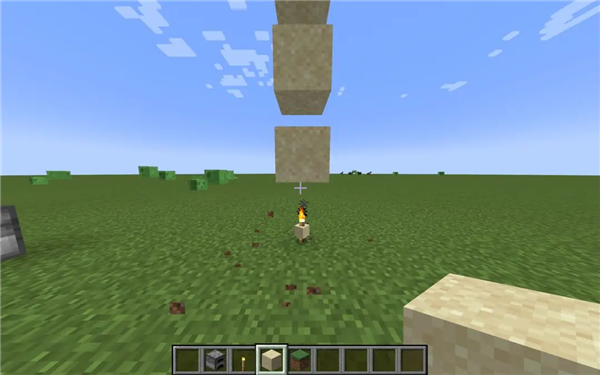 5、在沙子下方放火把,可以快速收集沙子。