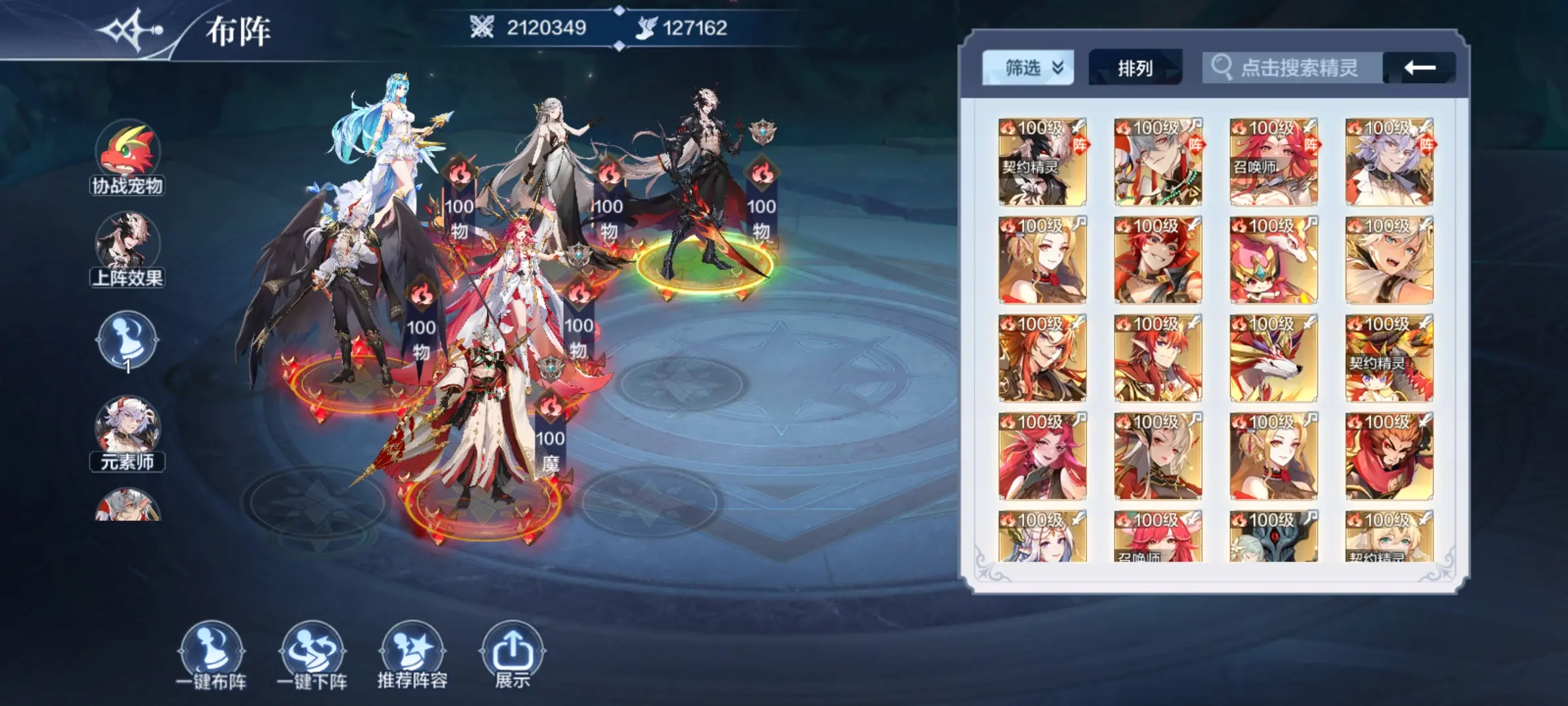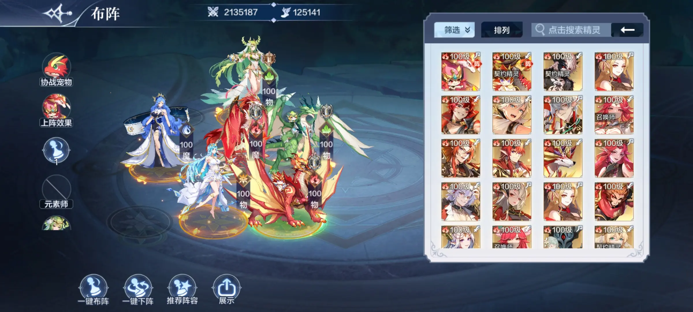 己方精灵每次开大获得少量气势,同时让下一位精灵进行出手一次。瑞妈可以让下一位精灵获得二段伤害,瑞妈如果通灵,己方精灵都可以获得二段伤害。烈心、水序和神曜飞龙作为主力输出,迷踪、瑞妈和炎神作为主力前排。我看了一下站位,如果水序和烈心换位置,可以让水序进行多次开大,将利益做到最大化。