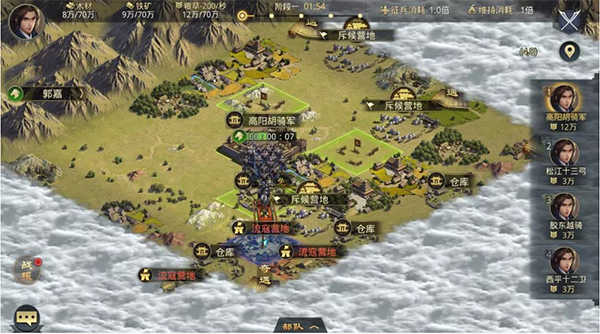 所有土地都不再提供产量,主公需要通过剿灭流寇营地获得资源补充,维持三军补给。