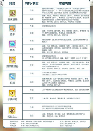 因为不同的玩法,材料也有很多,相信很多玩家在刚进入游戏都会比较懵逼,所以小编也把各类材料的作用与获取方式也一并给大家制作出来。