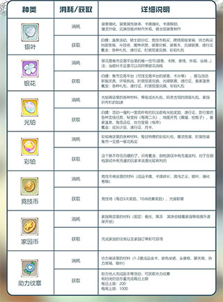 各类基础货币的消耗与获取方式,方便大家在第一时间了解到各类货币的作用,有更好的游戏体验,给大家做了一张详细的表格图片,方便大家观看。