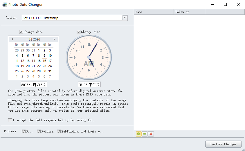 Photo Date Changer是一款专注于修改JPEG照片EXIF日期信息的工具,支持批量调整照片的拍摄时间、创建日期及修改时间。用户可手动设定或同步文件时间戳,适用于修正相机时钟错误、统一照片排序等场景,操作简单直观,处理效率高。有需要的朋友赶紧来下载使用吧!