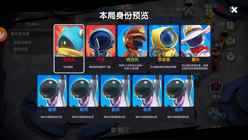 1、进入游戏后,你将与4-10名玩家一同参与对局,随机获得船员或冒名顶替者身份,开启紧张的太空生存挑战。