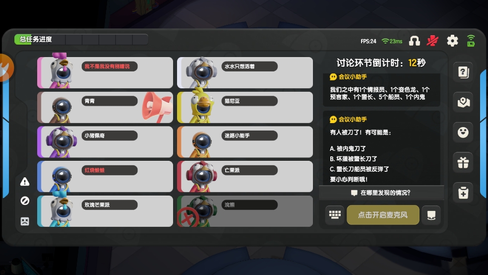 4、利用实时语音功能与其他玩家交流,选择合适发言模式,通过推理与演技助力己方阵营获胜。