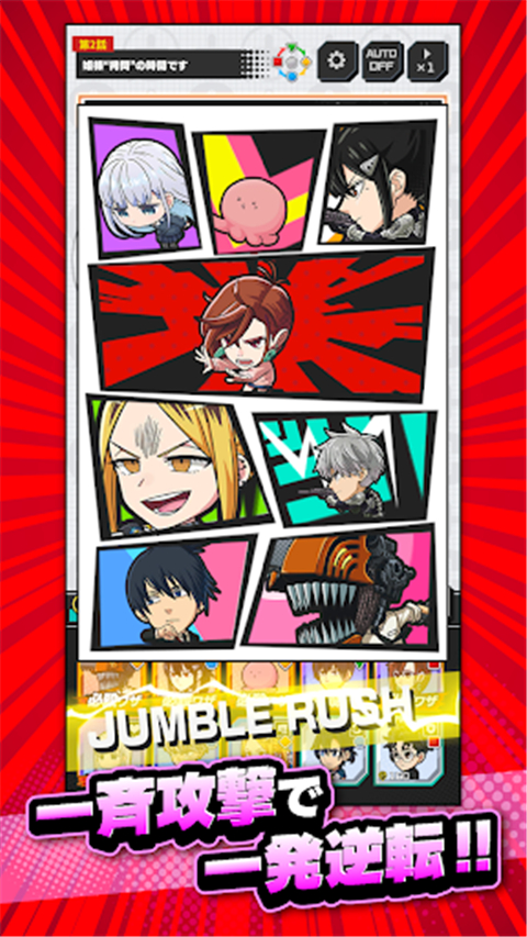 1、《少年JUMP+》的漫画画面型塔式游戏! 在以漫画画面为主题的舞台上,“少年Jump+”的角色们到处乱闹! 召唤自己喜欢的角色迎击逼近的敌人! 用自己的手发动再现了原作的各登场人物独自的必杀圈套,有利地推进战斗! 2、用必杀技来压制战斗!上前线! 使用队长点召唤「少年跳跃+」的角色! 从蜂拥而至的敌人那里守护英雄门,用必杀陷阱抓住逆转的瞬间! 时间经过的话「JUMBLE RUSH」可以发动! 舞台上的角色发动总攻击,将全敌角色一网打尽! 逆转劣势! 3、《少年JUMP+》人气角色大集结! 动作、战斗、SF、噱头、爱情喜剧等 超越种类「少年跳跃+」的造型大集合! 创造属于自己的梦想派对!更新日志