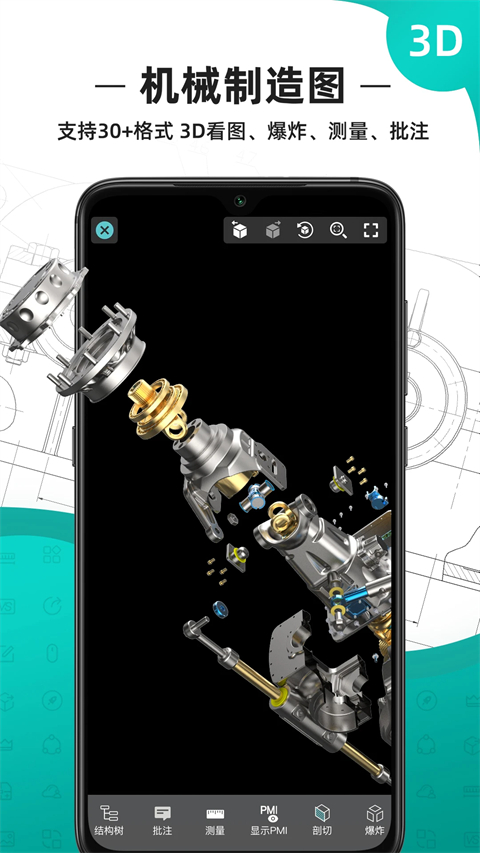 3、在3D看图模式下,您可以手动点击屏幕旋转您的图纸,立马360°全方位无死角的来观看,小编轻轻旋转了一下,图纸立马开始旋转;