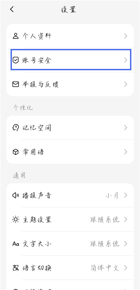 3、点击【账号安全】。