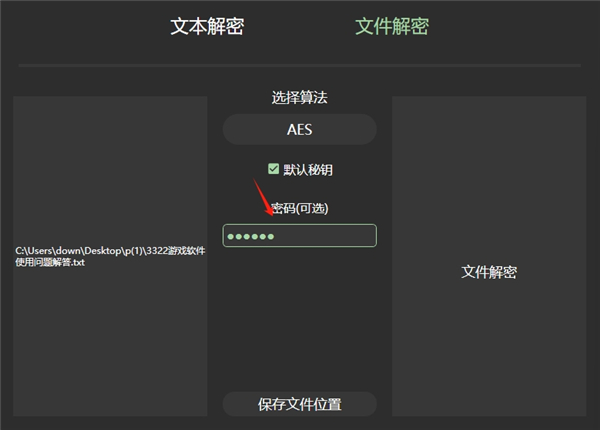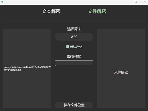 3、密码验证正确后,点击文件解密,选择保存文件位置,软件将对加密文件进行解密,恢复其原始状态。