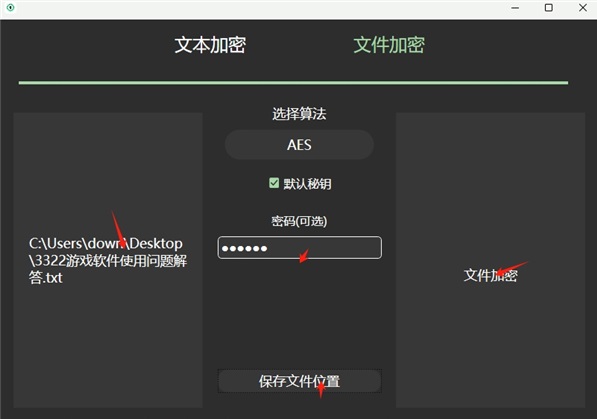 4、确认设置无误后,点击文件加密,选择保存文件位置,软件将对所选文件进行加密处理。加密完成后,会生成加密后的文件。