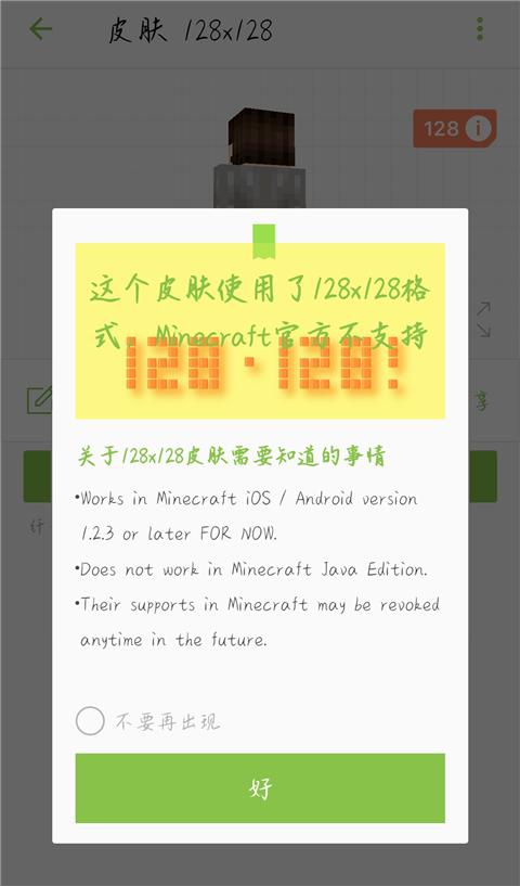 5、这个皮肤就变成128分辨率的了,玩家可以绘制更加高清的皮肤。