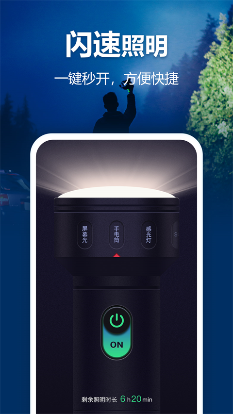 1、快速启动:一键开启手电筒照明,应急必备好帮手; 2、超炫界面:手机模拟真实手电筒打开或者关闭灯光; 3、彩色灯泡:左右滑动会改变颜色的灯泡,上下滑动改变亮度; 4、安防警报:配合警报及警报灯光效果用于防身应急必备灯光; 5、Disco舞灯:一款音乐与酷炫变色灯光相结合创造聚会舞灯; 6、SOS闪光灯:紧急求救灯光信号三短三长三短用闪光灯传递; 7、感光灯模式:智能识别光线,自动点亮或关闭照明; 8、其它功能:神秘的望远镜、变声器、尺子、水平仪等小工具;更新日志