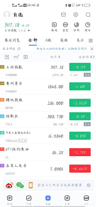 4、软件支持全市场品种添加自选股,实时关注市场动向,让你随时了解自选股走向。