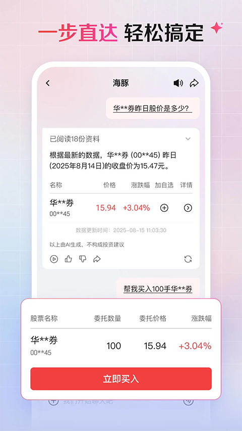1、【品牌升级】 正式更名为海豚股票,并启用全新LOGO,快来和海豚一起踏入全新炒股之旅 2、【操盘线升级】 K线标记策略信号,自动解析走势变化,增加压力支撑位,波段交易节奏更准,操作更有章法 3、【美股盯盘】 智能盯盘支持美股,及时掌握美股行情动向、财报预告等重要信息 4、【性能优化】 持续优化操作体验,新手引导更清晰,零经验也能快速学习,轻松进阶软件优势